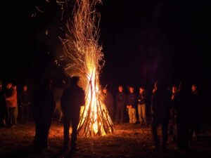 Im Gedanken an eine schöne Singerunde unter sternenklarem Himmel trafen sich am Abend des 21.12.2025 rund 40 Pfadfinder, ehemalige, Eltern und Freunde des Stammes. Wie üblich begann der Abend für uns mit einer Lichterspur auf der wir Zeit hatten, über ein paar besinnliche Geschichten und Zitate nachzudenken, und uns über sie auszutauschen. Am Ende trafen wir uns alle wieder an einem großen Feuer, um dort gemeinsam Lieder zu singen zu quatschen und wie traditionell in unserem Stamm üblich, in kleinen Gruppen gemeinsam über das Feuer, ins neue Jahr hineinzuspringen.