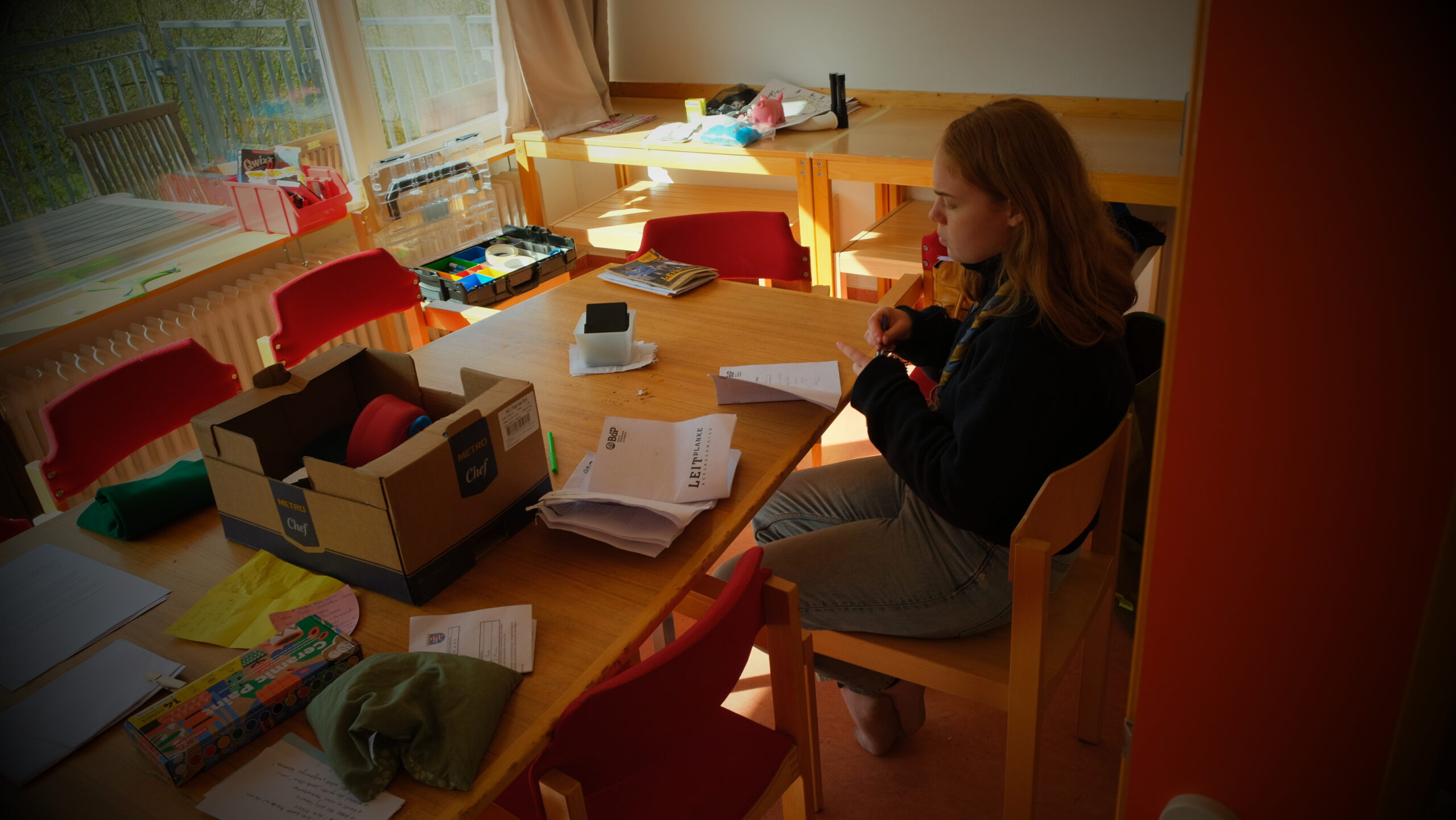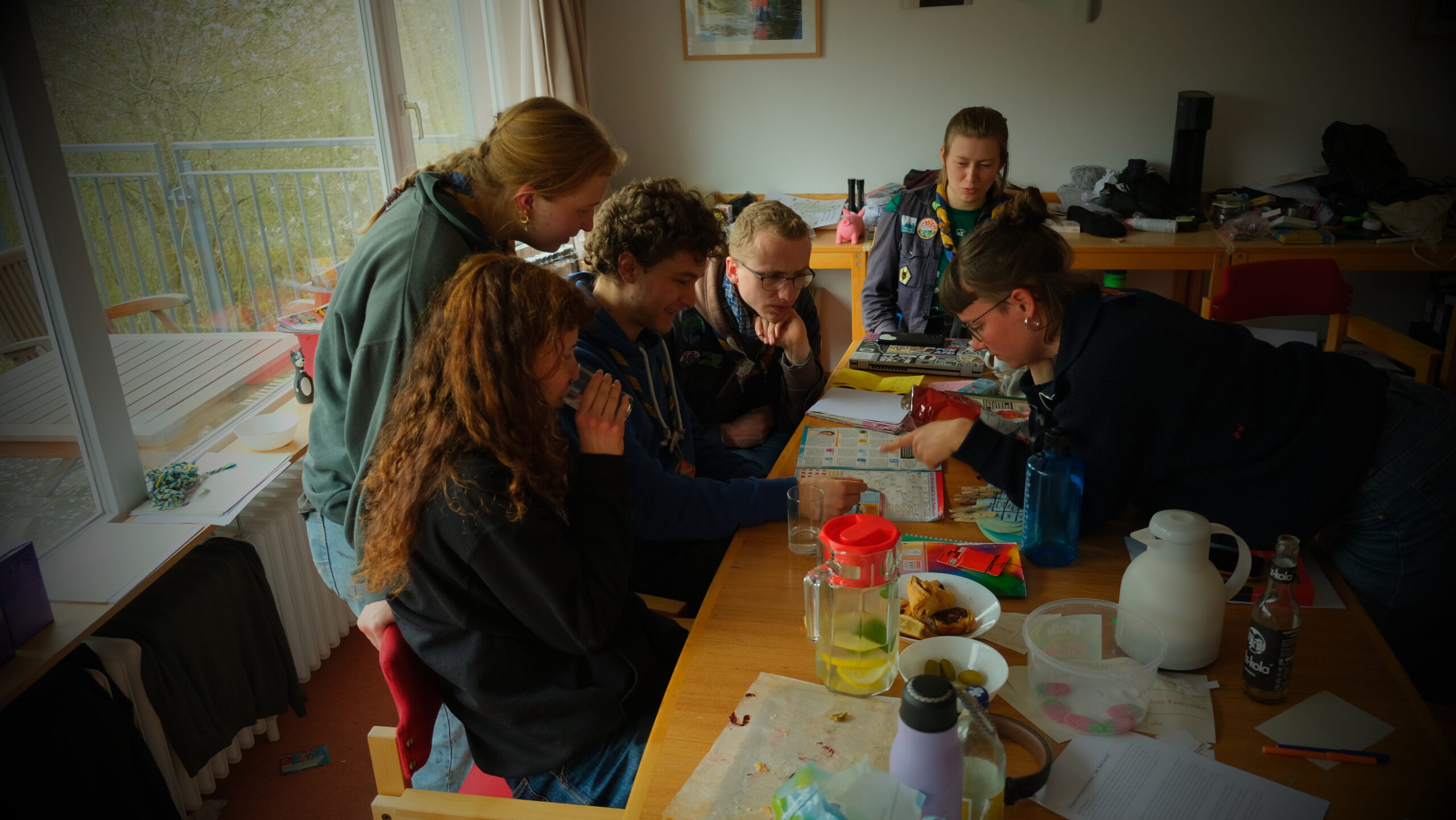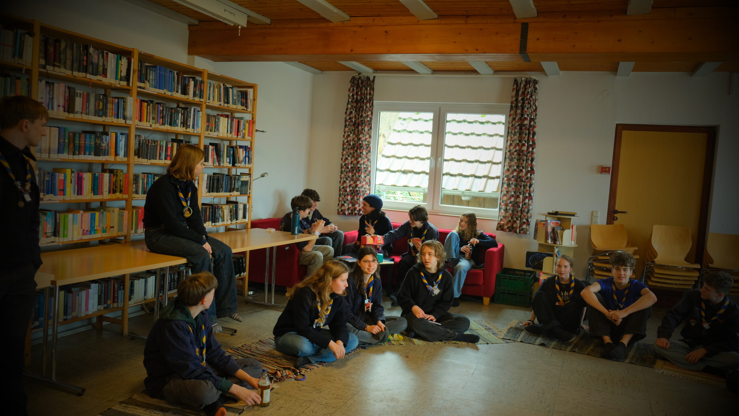 Diese Aktion, bei der es ausschließlich um Entspannung ging, wurde vom hessischen Arbeitskreis DoTTeR organisiert, welcher sich um alle Aktionen rund um die Sippenstufe kümmert. Am Freitag Abend angekommen, wurden wir mit leckerer Kürbissuppe und Tee begrüßt, und im Anschluss haben wir gemeinsam ein paar Kartenspiele gespielt. Übernachtet wurde in Betten in 3er- bis 4er-Zimmern, wir drei Steinadler hatten also ein ganzes Zimmer nur für uns.