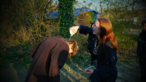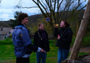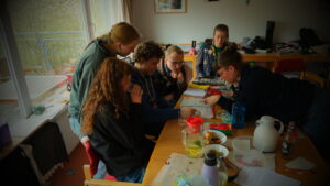 Am Samstag wurde nach dem Frühstück direkt in das Tagesprogramm reingestartet. Dabei konnten die Teilnehmenden sich entscheiden, ob sie – so wie ich – beim Haus bleiben und Aufstriche fürs Mittagessen vorbereiten oder in die Nähe von Dieburg fahren und dort die Grube Messel besichtigen. Diese Grube ist einerseits das erste UNESCO Weltnaturerbe Deutschlands und andererseits Fundstätte von mehr als 50 Millionen Jahren alten Fossilen. Den Rest des Tages haben wir dann im und um das Naturfreundehaus herum mit gemeinsamen Spielen und Plätzchen ausklingen lassen. Als Abschluss des Tages gab es noch eine Lichterspur durch den Wald mit Fragen zum Nachdenken und einer anschließenden Singerunde.