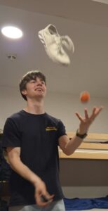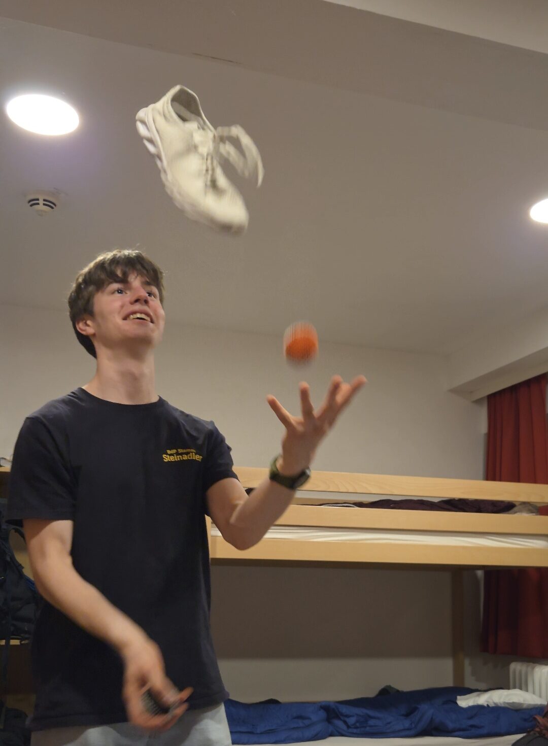 Wie alle zwei Jahre fand auch 2025 wieder ein Landespfingstlager statt, bei dem sich alle Stämme aus unserem Landesverband, dieses Jahr mal wieder auf unserem Landeszeltplatz in Homberg (Ohm), zu einem gemeinsamen Lager treffen. Thema dieses Mal war „Alles steht Kopf“, was wir jedoch erst am Samstag erfuhren. Nach einer bahnbedingt anstrengenden Hinreise wurden beim Eintreffen auf den Lagerplatz erst einmal unsere ̶g̶̶e̶̶b̶̶a̶̶s̶̶t̶̶e̶̶l̶̶t̶̶e̶̶n̶ natürlich original echten Tickets geprüft. Dann ging es schon zum Aufbau. Im Laufe des Lagers lernten wir die verschiedeneren Emotionen besser kennen und eiferten am Ende auch in verschiedenen Wettstreiten, u.a. einem Singewettstreit, bei dem Lukas so eine gute Performance ablieferte, dass für die eine eigene Kategorie erstellt werden musste, um den Sieg.